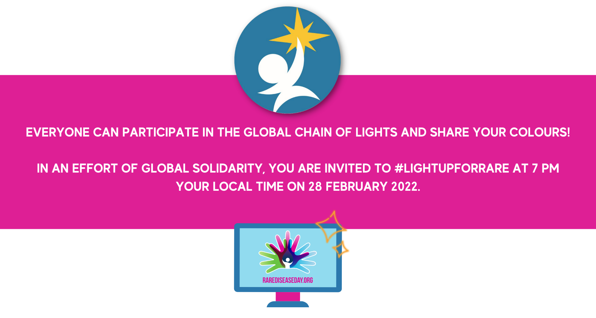 Play the #LightUpForRare video on your computer or smart TV to fill your room with vibrant Rare Disease Day colours.